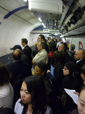 After getting all dolled up, I had to hop on the Tube (aka subway) to head on over to the wine conference center, and this is what I was met with …..