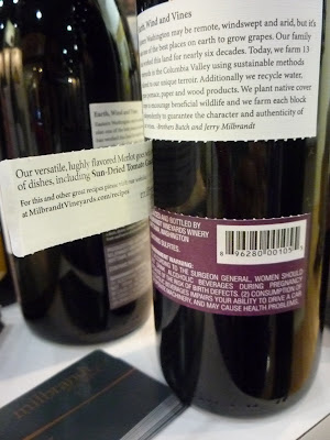 Check out this awesome back label from Milbrant Vineyards, you peel off a portion on the back section and you have a food pairing for the wine! (Will blog more about these wines later, as I totally loved them!)