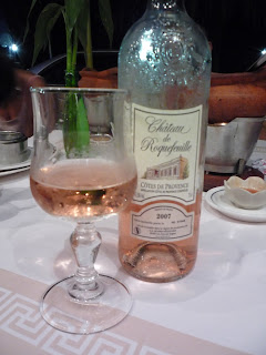 For dinner that night we ate at this fabulous Thai restaurant in downtown Saint Raphael, over looking the major boulevard and sea! We had a 2007 Cotes de Provence from the Chateau de Roquefeuille. It was in between the previous two, as far as lightness. I remember it having a nice fruity smell, but just an essence of it.