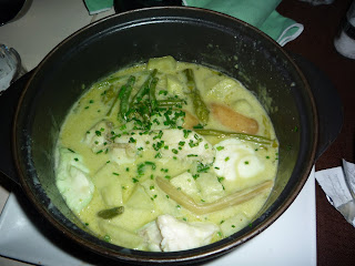 For the main dish though…….I was in heaven! I ordered one of the best green curry dishes I have ever had!! It was a seafood curry and I was completely silent through the entire dinner. My mouth could only focus on consuming more and more of this yummyness. The wine served more as a thirst quencher than anything else. I mean after all wine is 86% water!